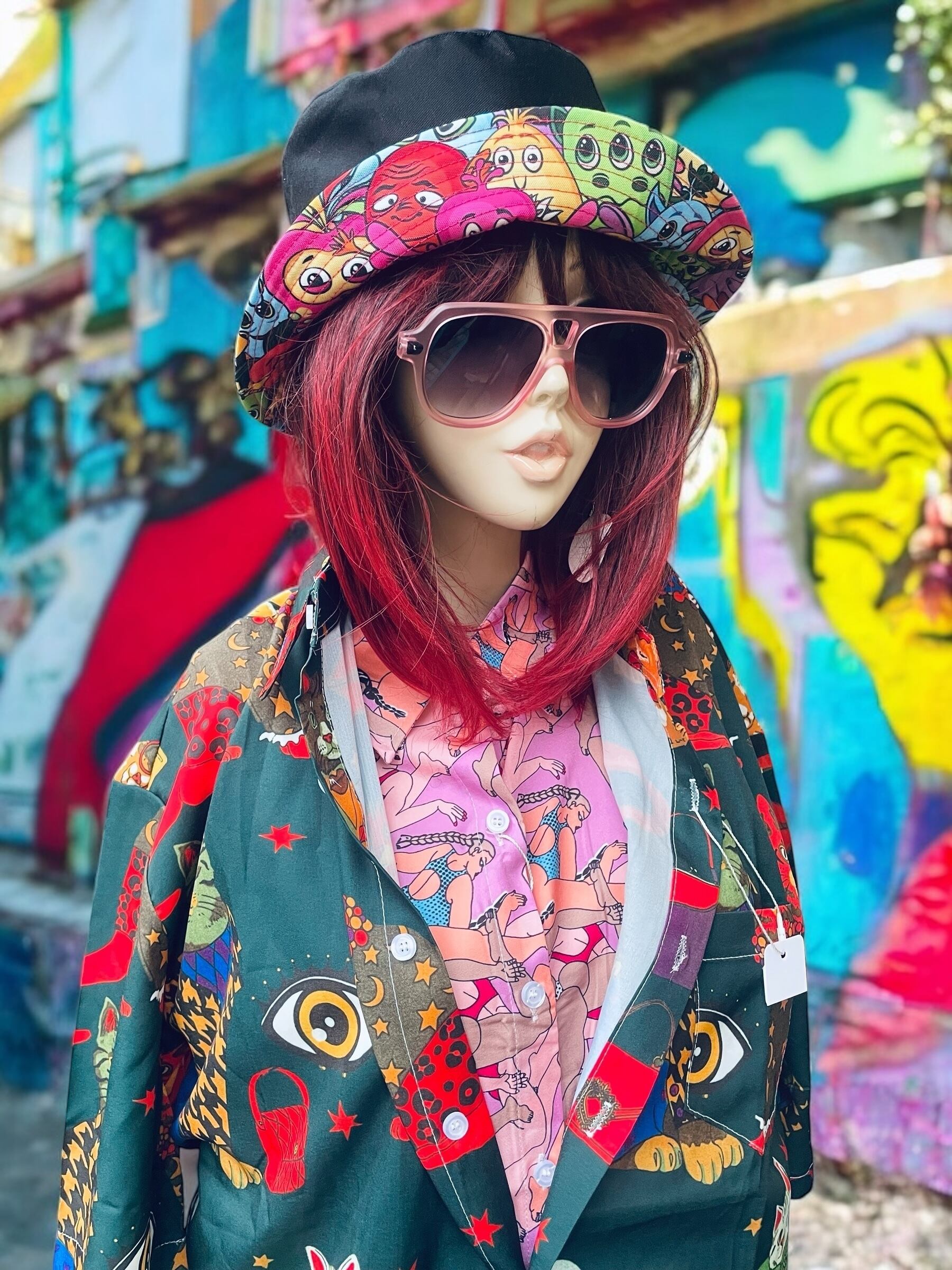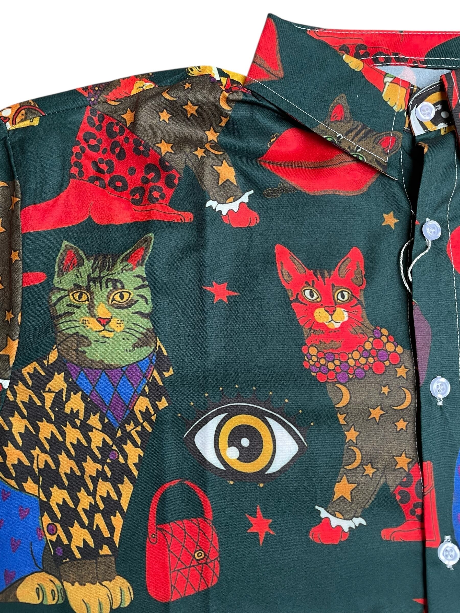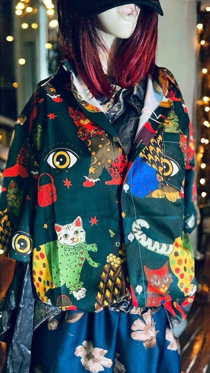 ネコ総柄サイケデリックカラーシャツ