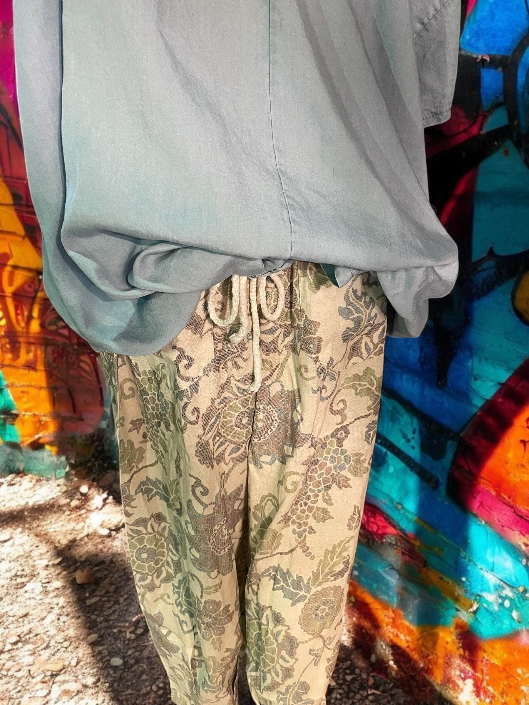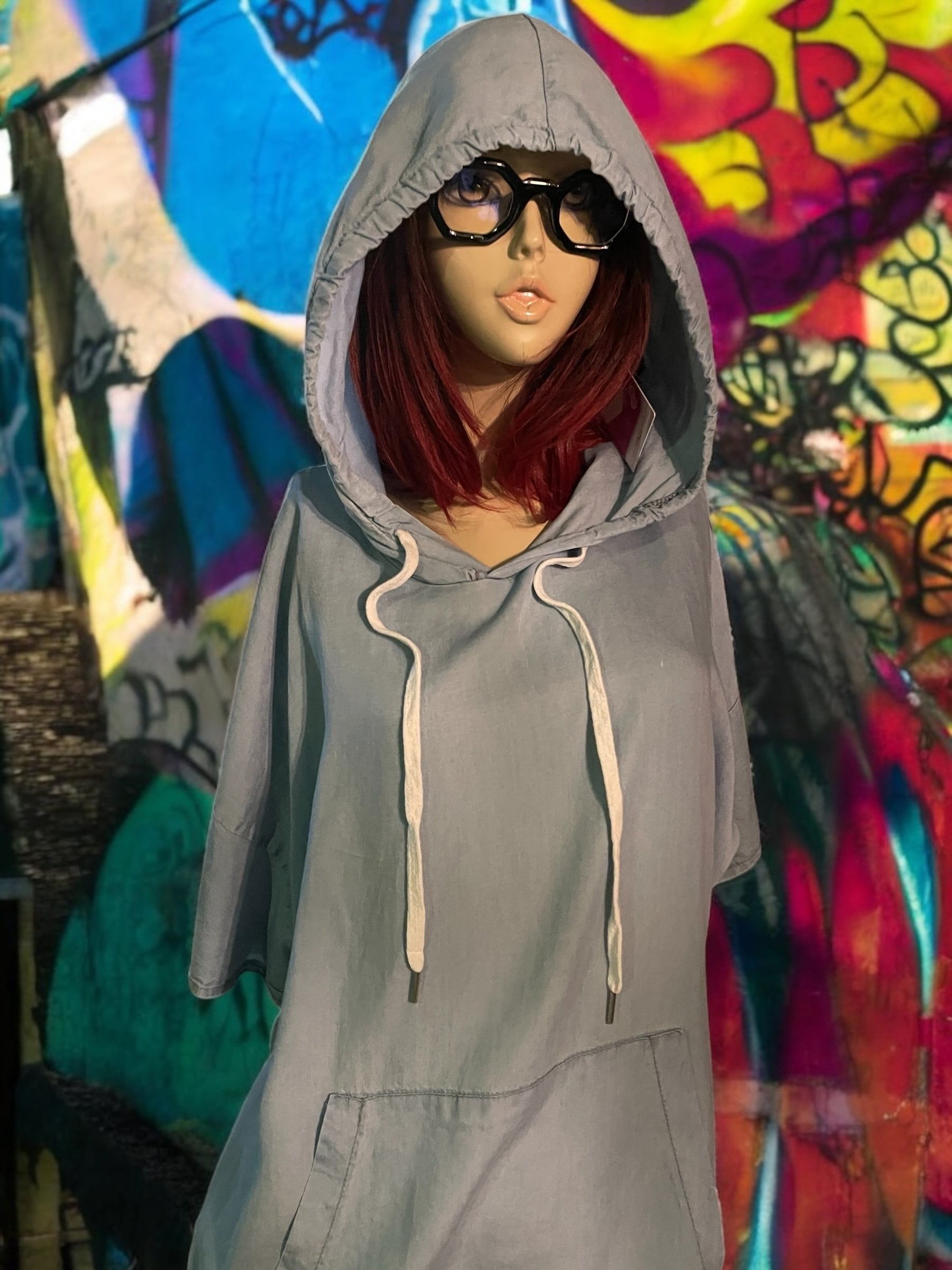 後の紐を結ぶと丈を変えたりバルーンに型を変えたりできます。