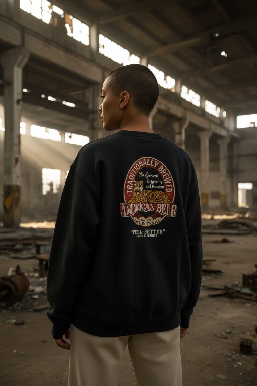 アメリカンビアラベルが刺繡されたトレーナーで、ビッグシルエットが特徴のアイテムです。ゆったりとしたシルエットが体型を選ばず、快適な着心地を実現。ユニークなビアラベルデザインが、あなたのコーディネートに個性をプラスします!