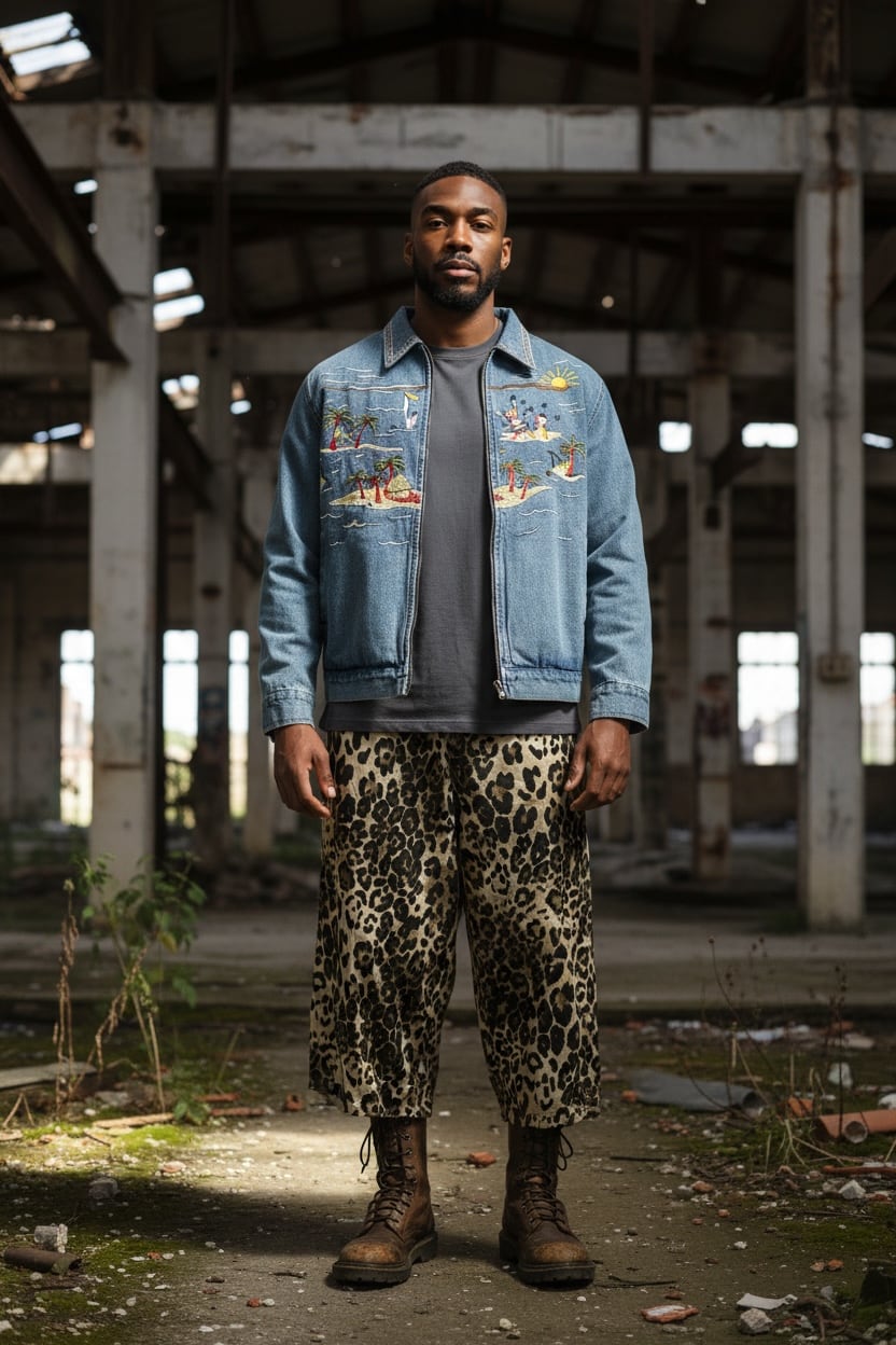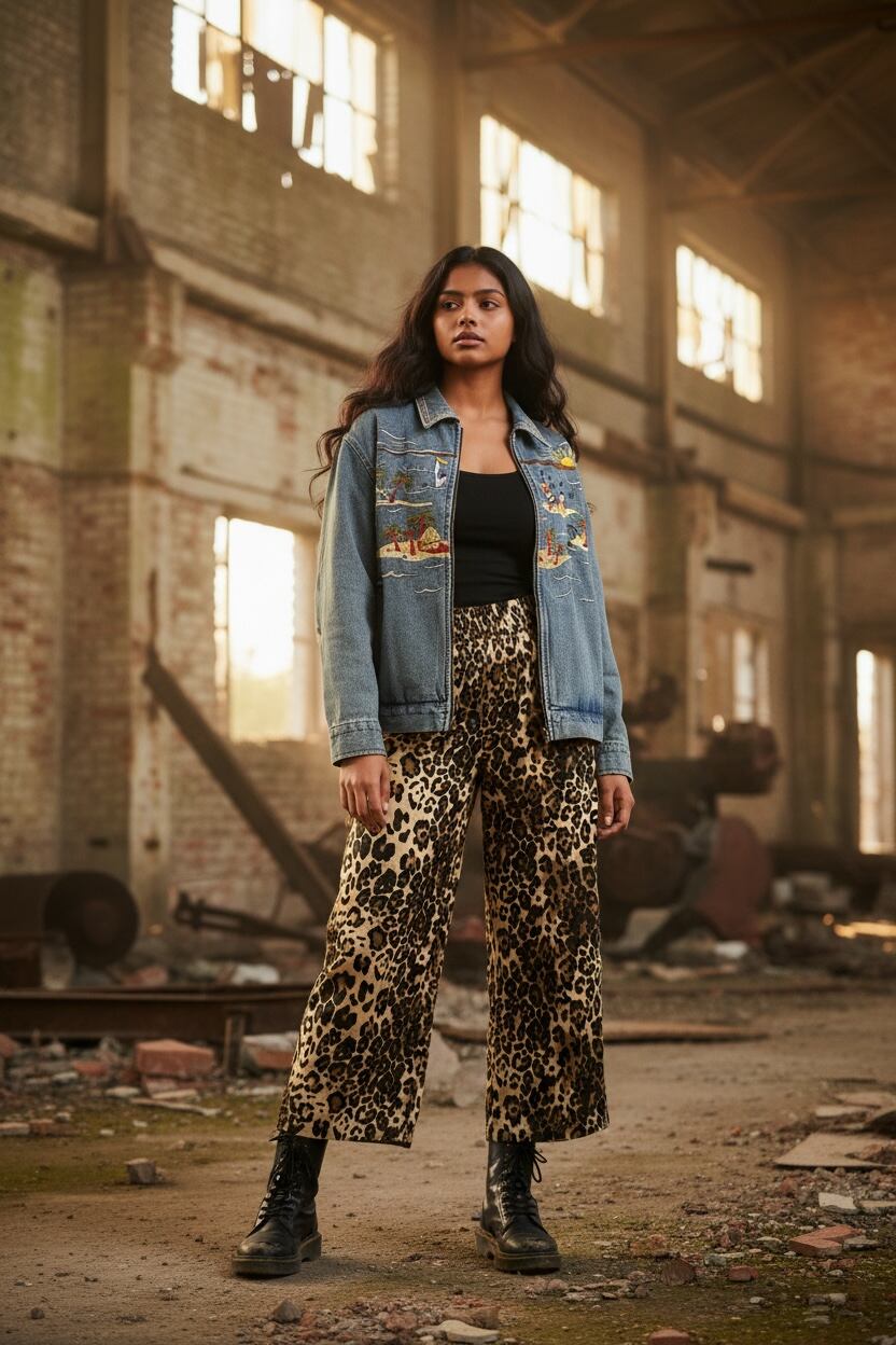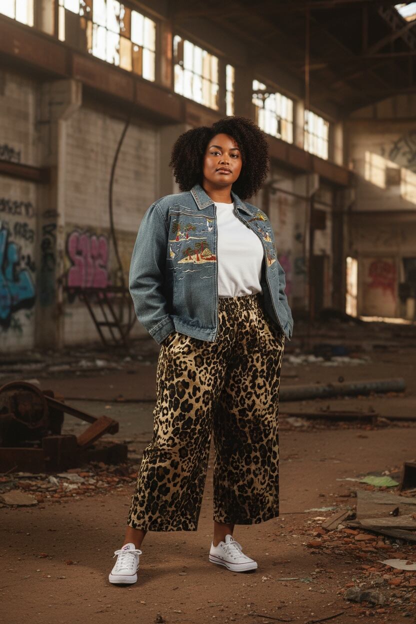 ヒョウ柄ワイドパンツクロップド丈↓