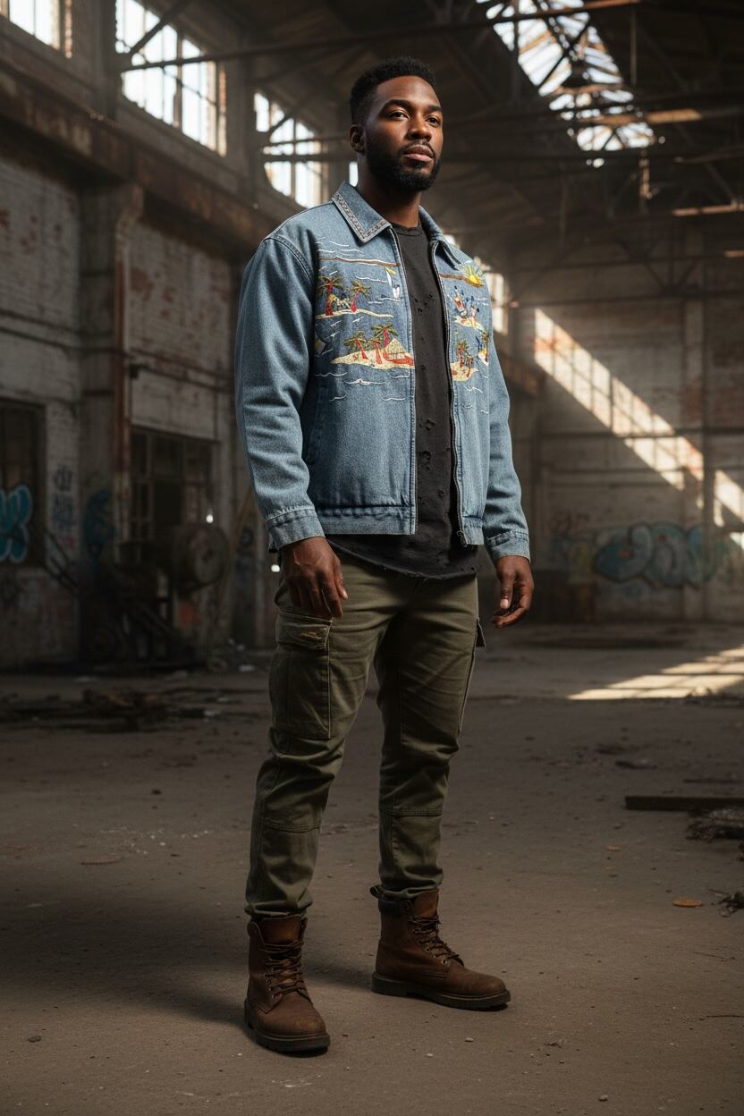 バカンス刺繍デニムジャケット