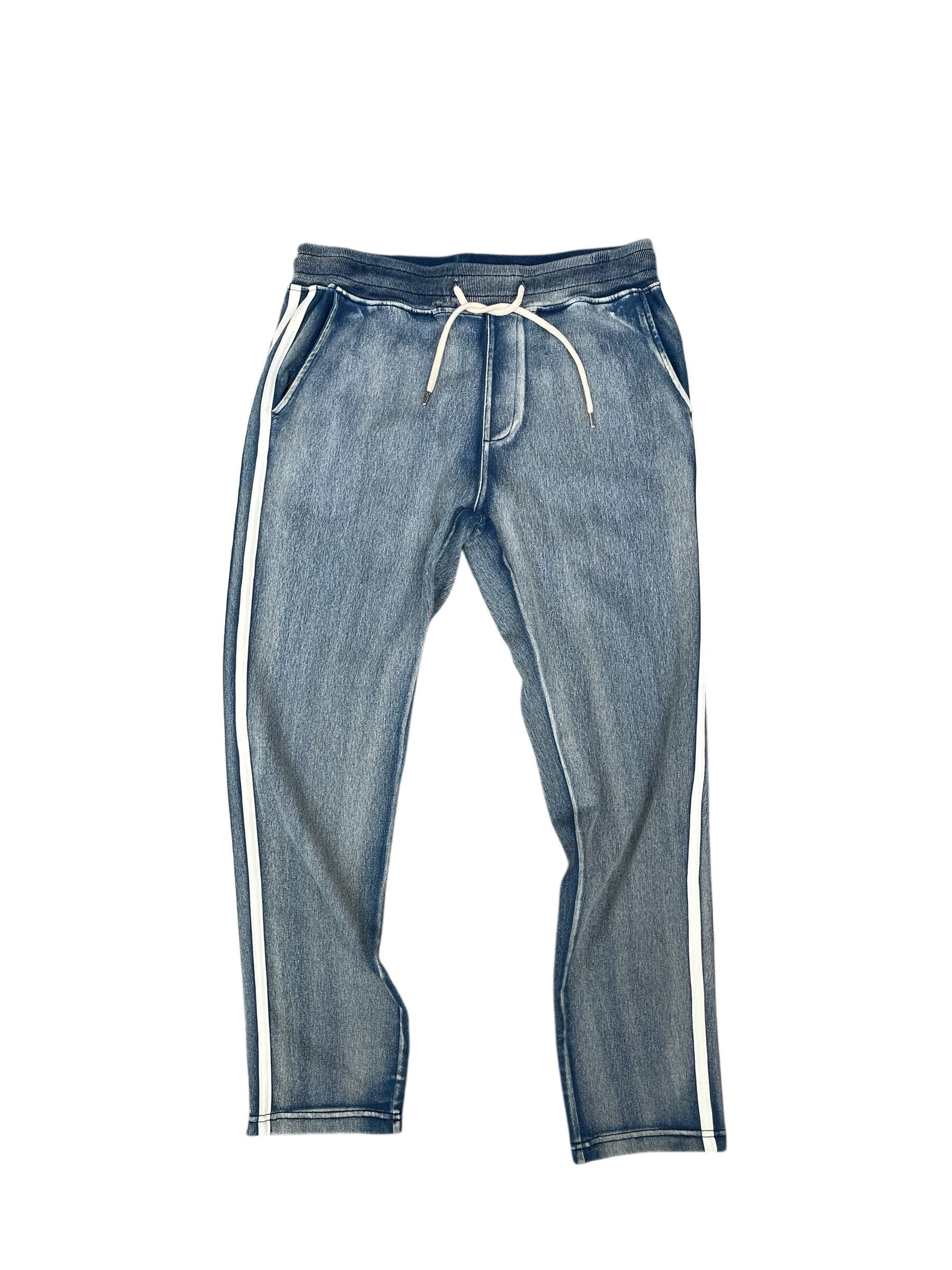 カットデニムストレッチパンツXL ライン ウォッシュ