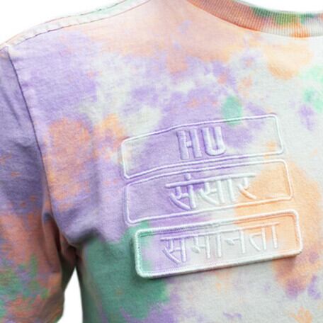 ユニークな総柄プリントと、後ろに特別な刺繍のアートワークをあしらった、メンズのコットンTシャツ。