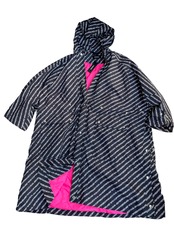 ドルマンスリーブタイプのビッグサイズのコートですが、フードと両サイドの脇にスナップボタンがいくつかあってそれの組み合わせで型を変化させられます。あとポケットの上部に数ヶ所あり。