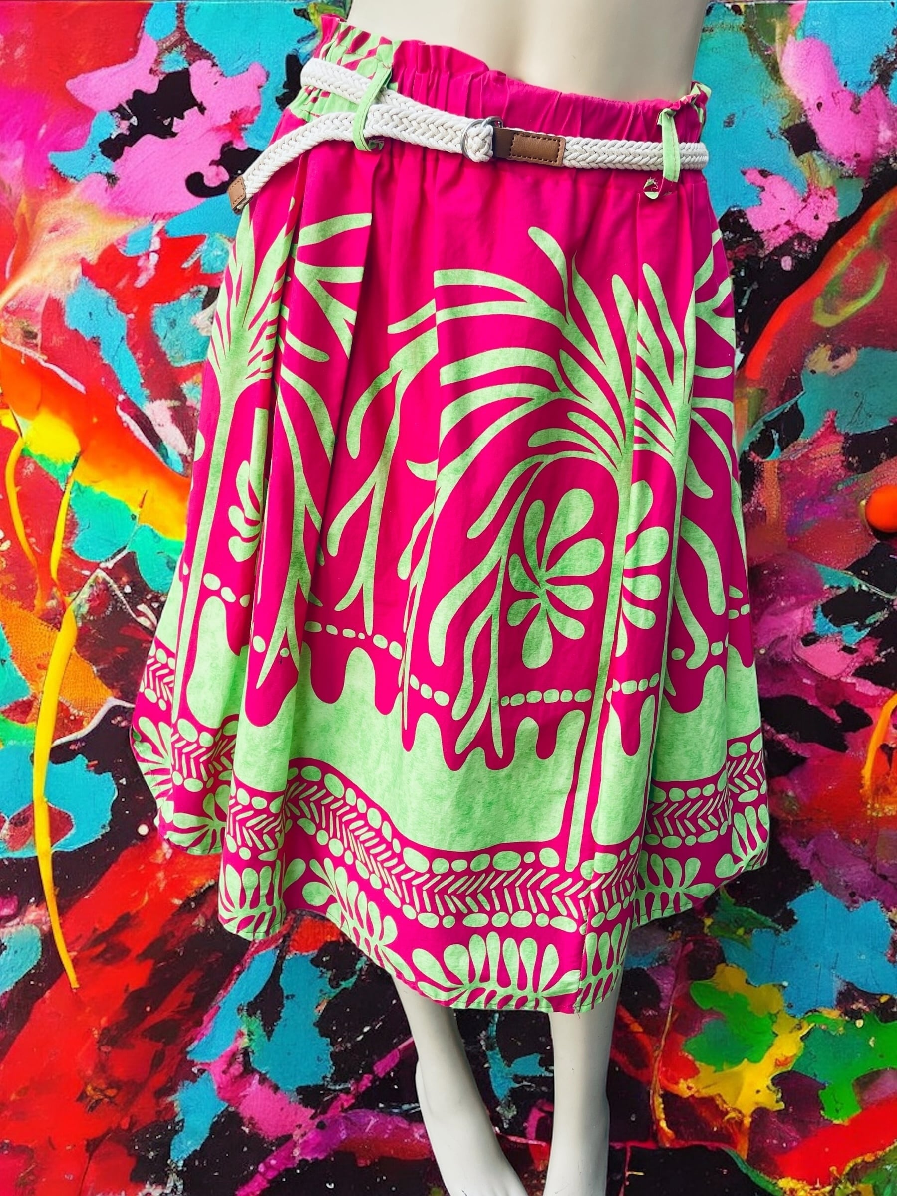 南国プリントサイケデリックカラーミドルスカート
