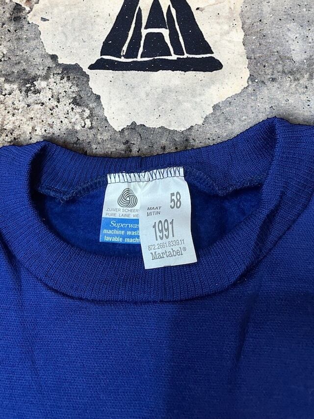 オランダ軍にて採用されていたウールスウェットです。 セーターとスウェットの中間のような厚み。綺麗な明るめのネイビー色がアーバンな雰囲気を演出してくれるアイテムです。 モックネック気味の首元と袖口のしっかりしたリブが印象的で、長めの着丈を調和してくれます。 質の高いウール生地は着用時のチクチク感も少なくスウェットに近い感覚で着用頂けます。