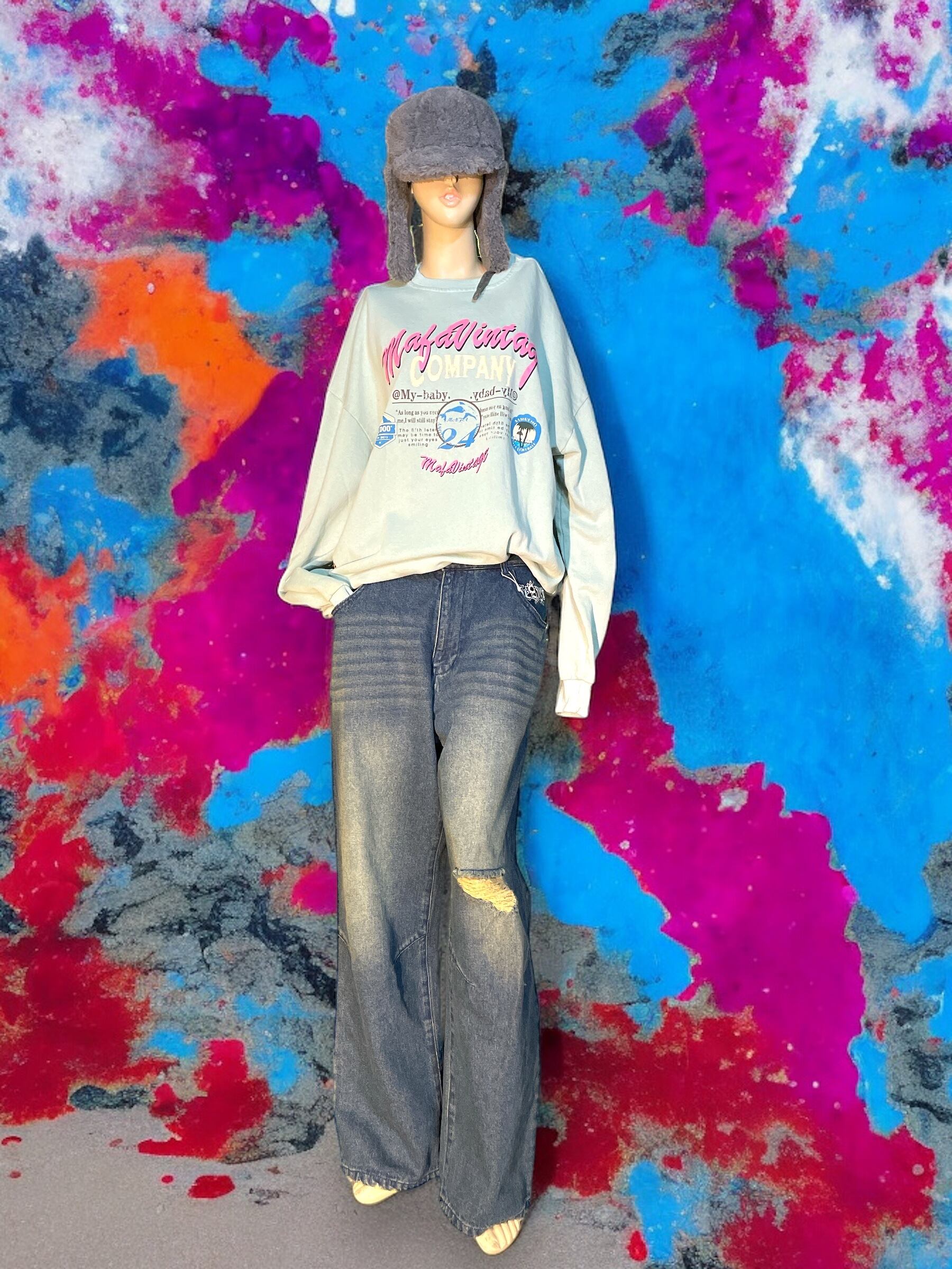 SEQUENZ/WIDE DESTROYED DENIM
