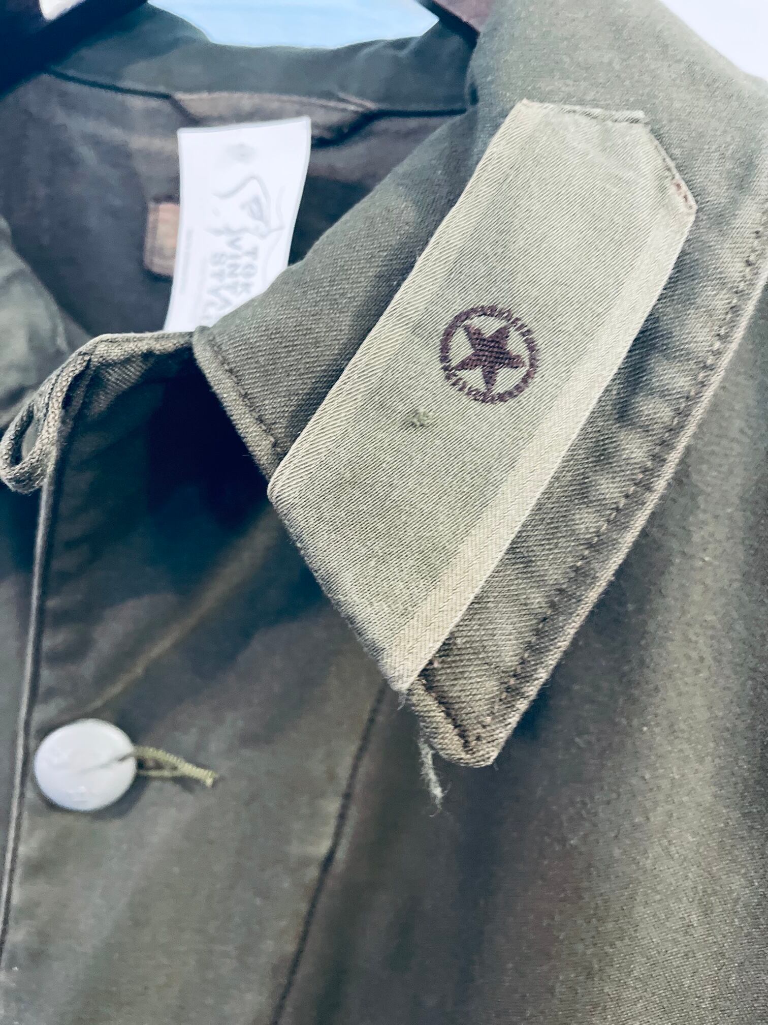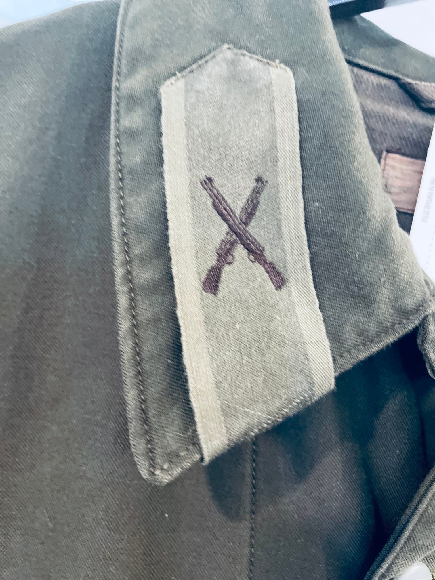 襟の所に左右違うサインの刺繍があります。
