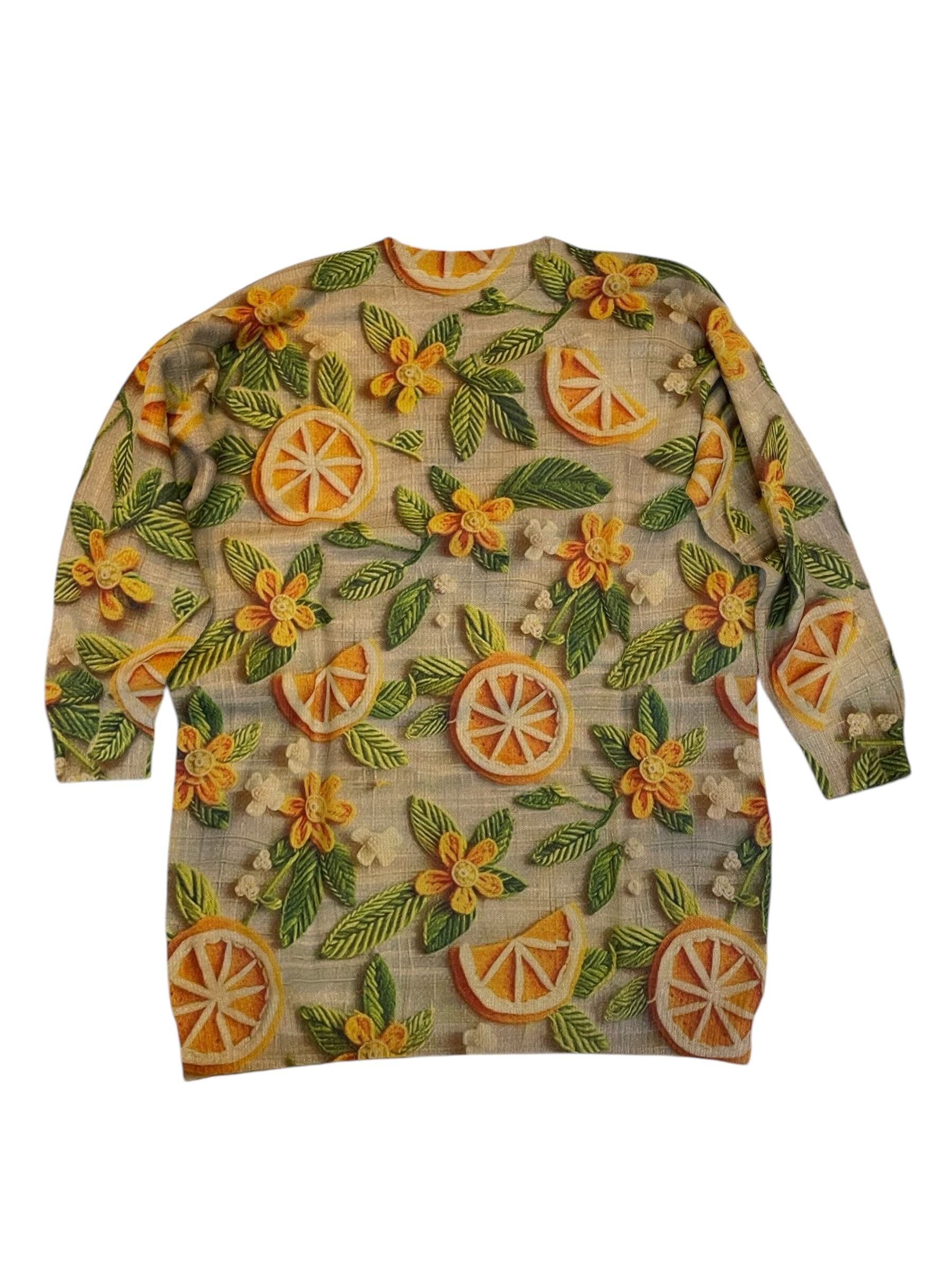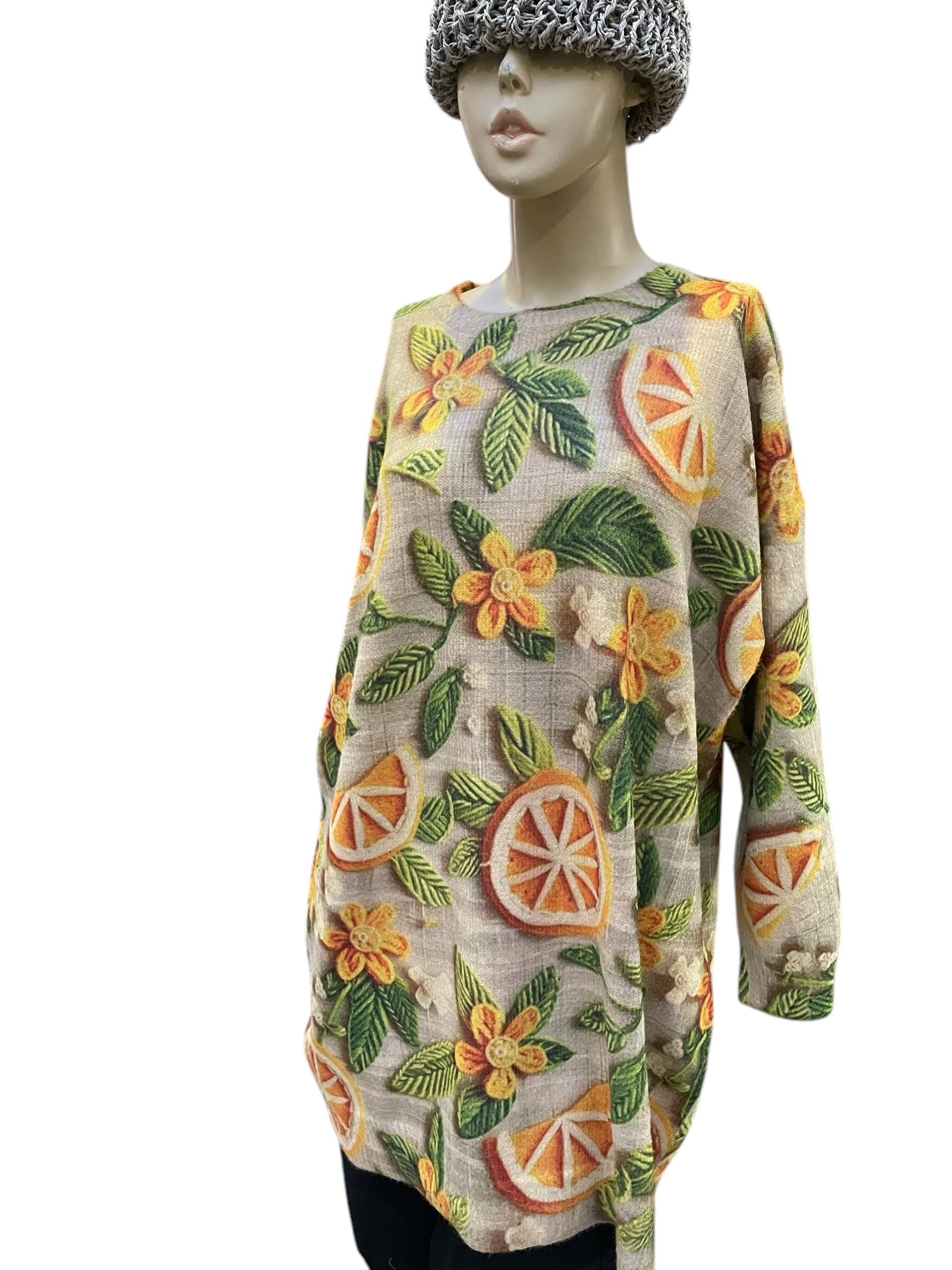 セーターに総柄のインクプリントで仕上げた着心地抜群のニットになります。